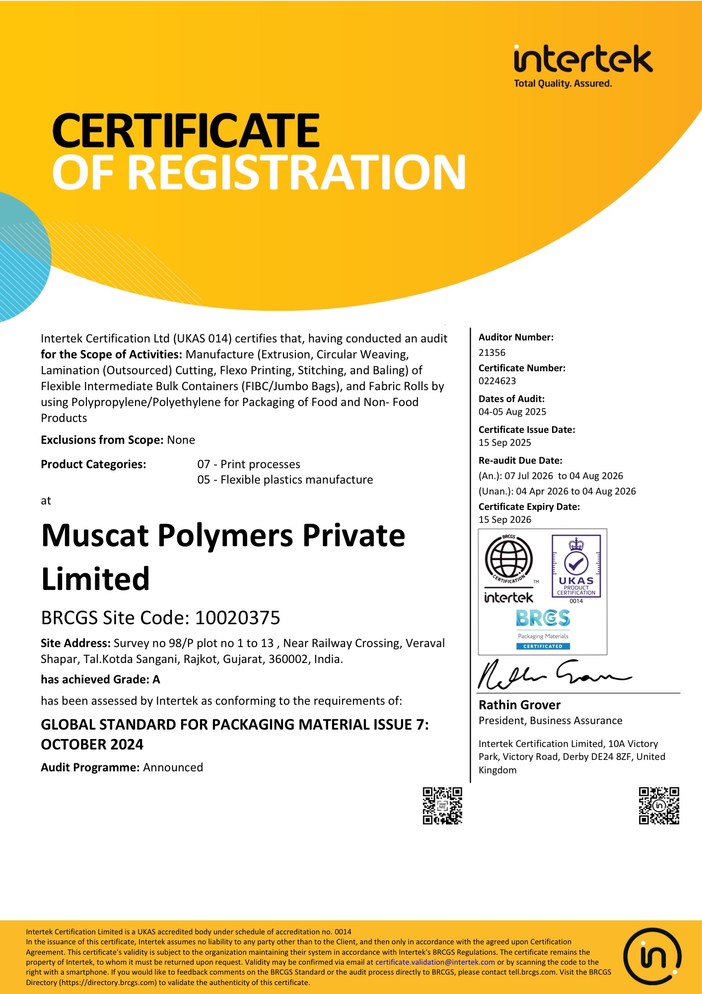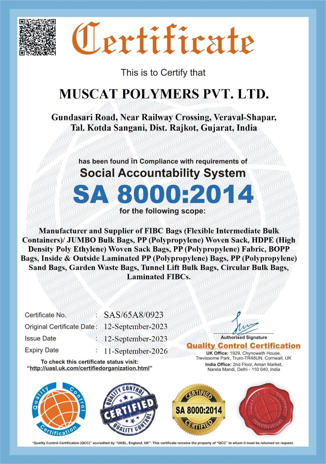 BRCGs Grade A Certified, 22000, ISO 9001, 14001, ISO 45001,SA 8000
